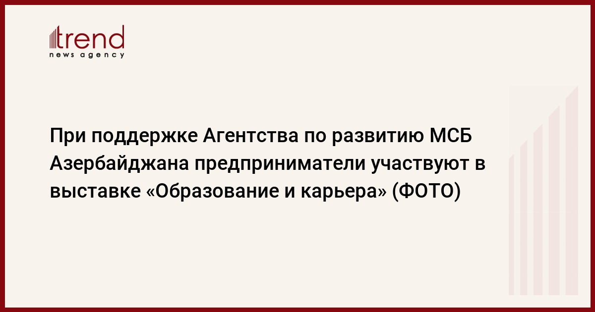 БАКУ /Trend/ - Агентство по развитию малого и среднего бизнеса (МСБ) в этот раз оказало поддержку в участии представителей микро- и малого бизнеса в 13-й Азербайджанской международной выставке "Образование и карьера", проходимой в Бакинском Экспоцентре 10-12 октября, сообщает в пятницу Trend.