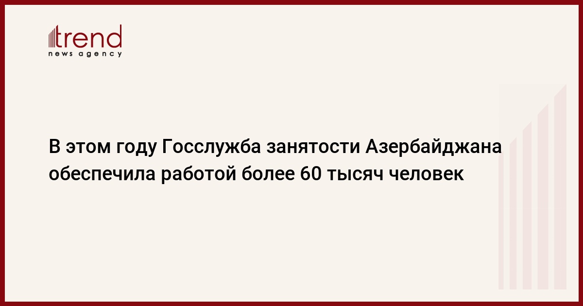 БАКУ/Trend/ - За январь-сентябрь этого года Государственная служба занятости при министерстве труда и социальной защиты населения Азербайджана обеспечила работой 61,791 тысячи безработных и соискателей.