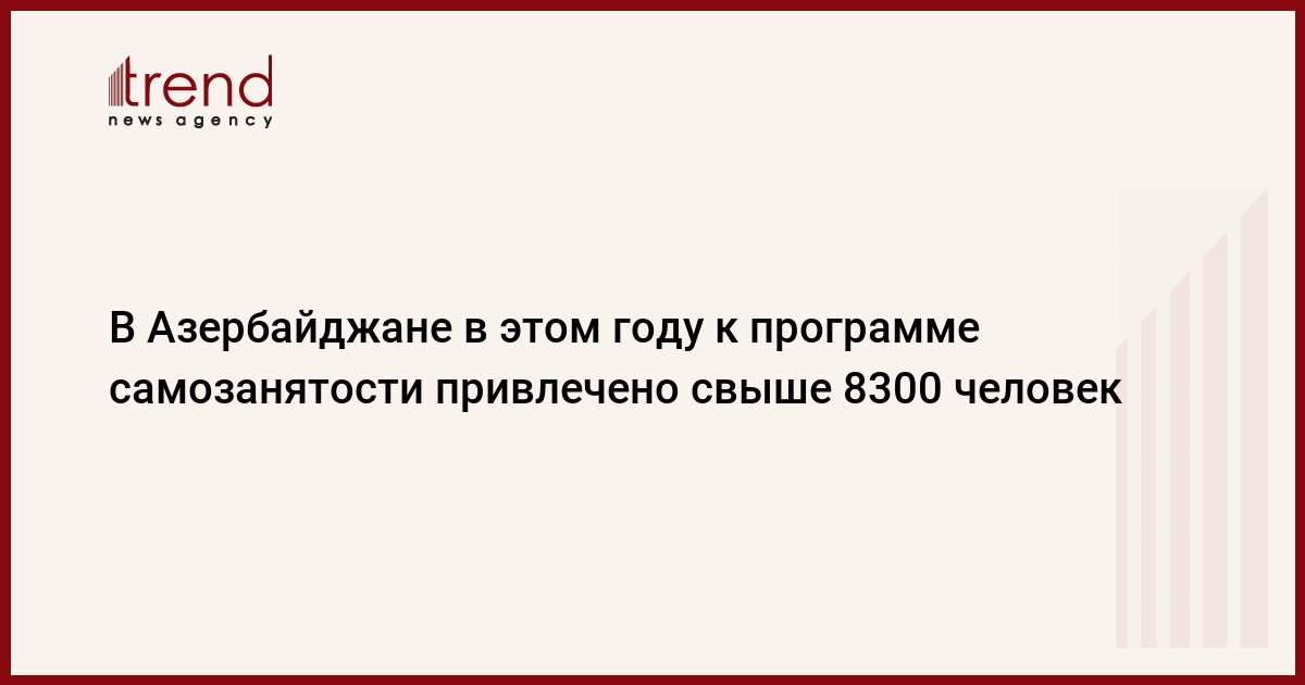 БАКУ/Trend/ - Число лиц, привлеченных к самозанятости, Государственной службой занятости при министерстве труда и социальной защиты населения Азербайджана, достигло 8309 человек.