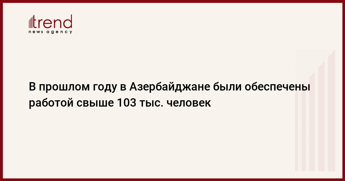 БАКУ/Trend/ - Государственная служба занятости при министерстве труда и социальной защиты в 2019 году населения обеспечила подходящей работой 103 028 безработных и соискателей.