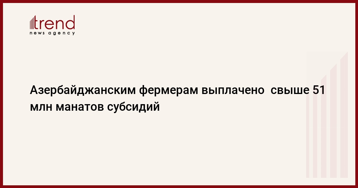 БАКУ /Trend/ - С начала года и по настоящее время в связи с осенним севом 155 537 фермерам выплачены 51,3 миллиона манатов субсидий, сообщает в пятницу Trend со ссылкой на министерство сельского хозяйства.