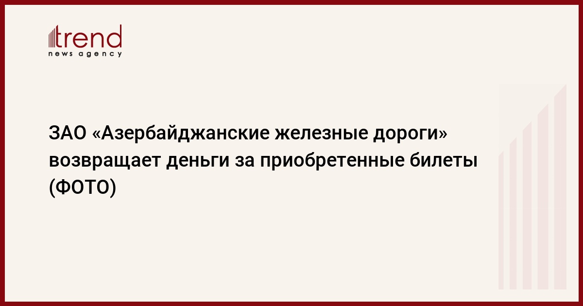БАКУ /Trend/ - ЗАО «Азербайджанские железные дороги» полностью возвращает деньги за билеты, приобретенные на поезд Баку-Тбилиси-Баку, сообщает в понедельник Trend со ссылкой на ЗАО.