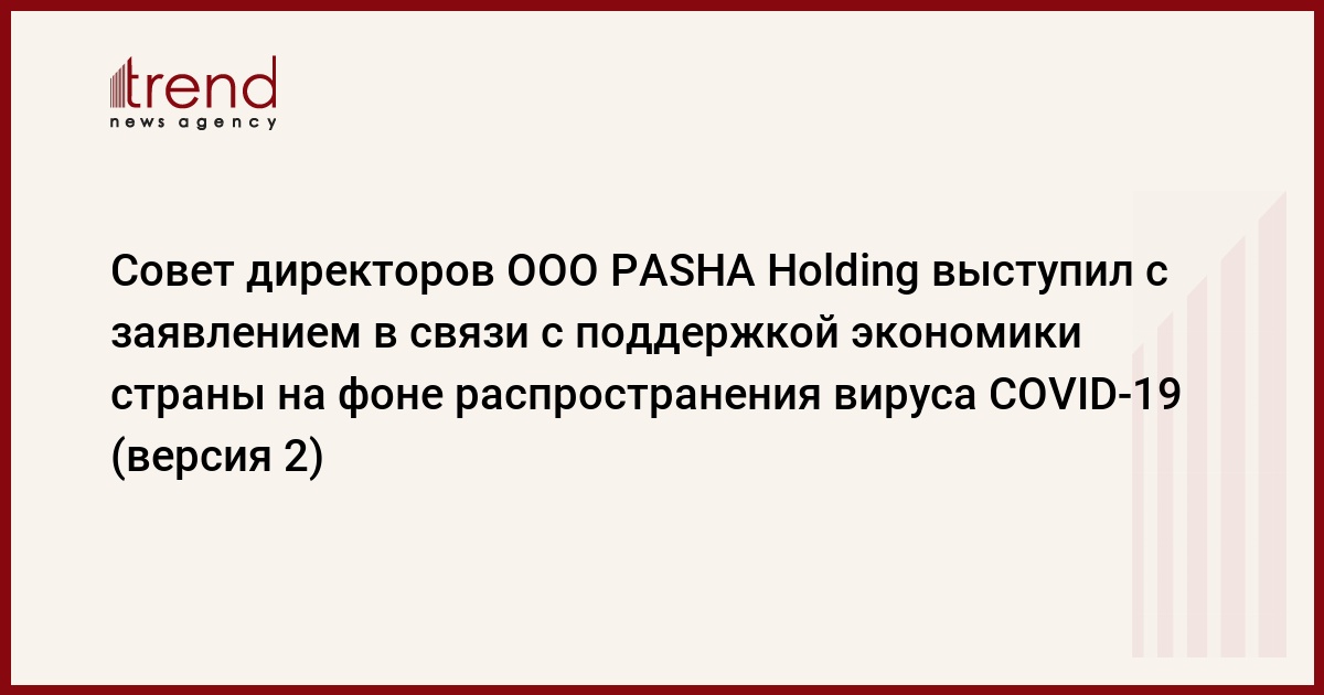 - PASHA Holding пожертвует 2 миллиона манатов в Фонд поддержки борьбы с коронавирусом, созданный соответствующим указом Президента Азербайджана Ильхама Алиева;
