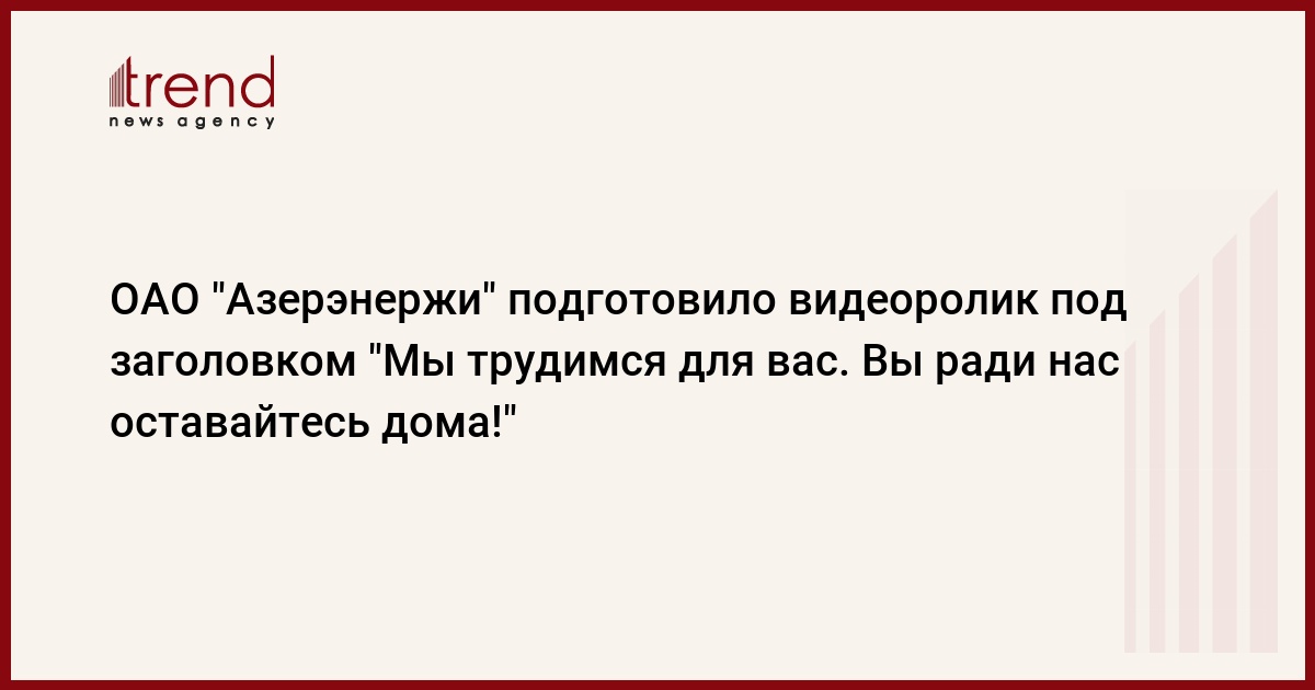 БАКУ /Trend/ - ОАО "Азерэнержи" подготовило видеоролик под заголовком "Мы трудимся для вас. Вы для нас оставайтесь дома!".
