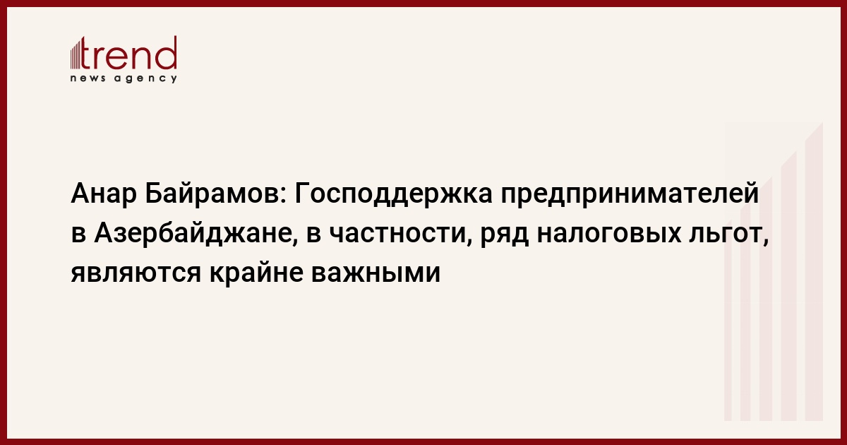 БАКУ/Trend/ - Широкое распространение вируса COVID-19 во всем мире наряду с нанесенным здоровью людей вредом, также вызвало застой в глобальной экономике. Государственная поддержка предпринимателей в Азербайджане, в частности, пакеты финансовой помощи, ряд налоговых льгот и прочие стимулирующие меры для поддержания экономической стабильности в стране являются крайне важными.