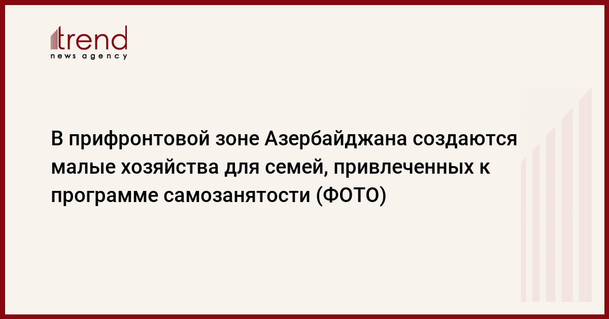 БАКУ /Trend/ - При поддержке азербайджанских банков в прифронтовой зоне создаются малые хозяйства для семей, привлеченных к программе самозанятости.