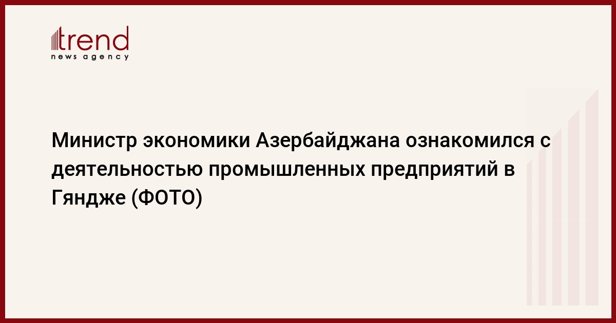 БАКУ /Trend/ - Министр экономики Микаил Джаббаров в рамках посещения северо-западного региона побывал на предприятиях в городе Гянджа.