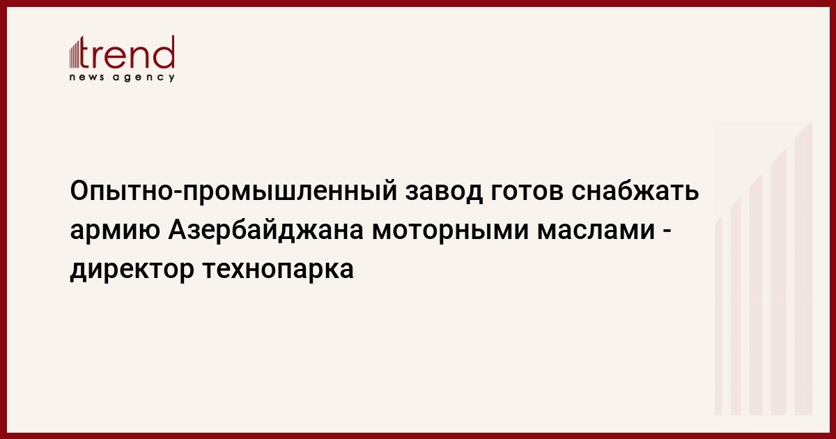БАКУ /Trend/ - Опытно-промышленный завод Технологического парка Национальной академии наук Азербайджана готов снабжать азербайджанскую армию моторными маслами.