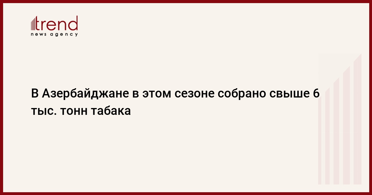БАКУ /Trend/ - На полях продолжается сбор табачного листа. По состоянию на 20 ноября фермеры собрали 6 065,2 тонн табака и доставили в приемные пункты 5 087,5 тонн сухого табака.