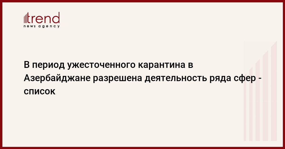 БАКУ /Trend/ - Названы сферы, деятельность которых разрешена в Азербайджане в период ужесточенного карантинного режима c 14 декабря 2020 года по 18 января 2021 года.