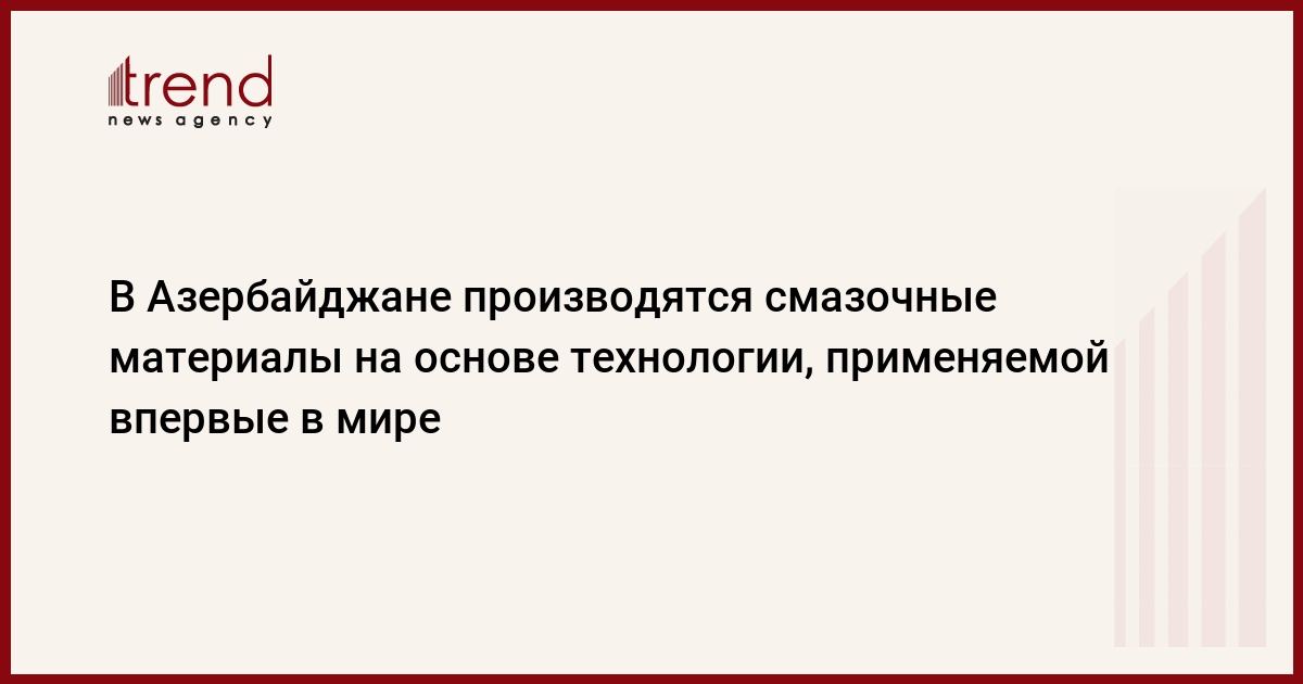 БАКУ /Trend/ - Резидент Парка высоких технологий (ПВТ) Национальной Академии наук Азербайджана (НАНА) производит смазочные материалы на основе новой технологии, применяемой впервые в мире.