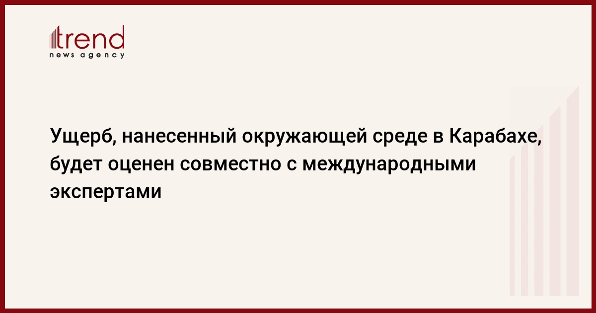 БАКУ /Trend/ - К оценке ущерба, нанесенного окружающей среде на освобожденных территориях Азербайджана в период оккупации, предусматривается привлечь международных экспертов.