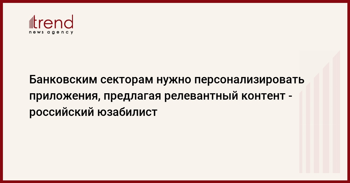 БАКУ/Trend/ - Чтобы настроить функции и интерфейсы приложения под нужды конкретного пользователя, нужно персонализировать приложение, предлагая релевантный контент, адаптируя дизайн основных экранов приложения, сказал Trend ведущий российский юзабилист, основатель компании ООО "USABILITYLAB" Дмитрий Сатин.