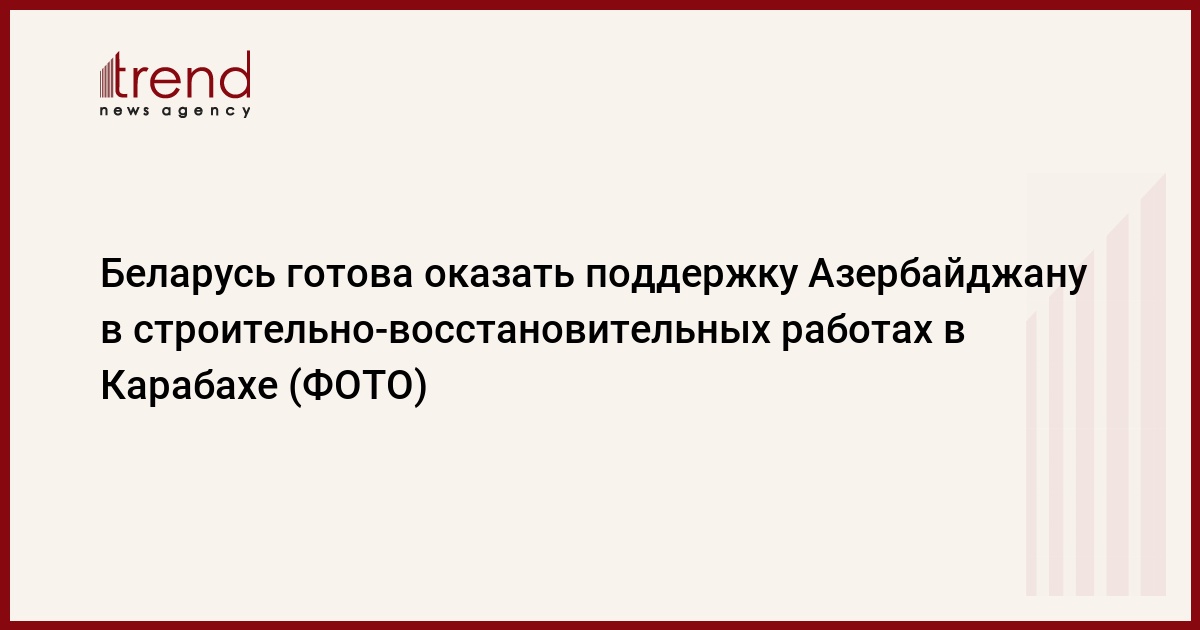 БАКУ /Trend/ - Беларусь готова оказать поддержку Азербайджану в строительно-восстановительных работах в Карабахском регионе.