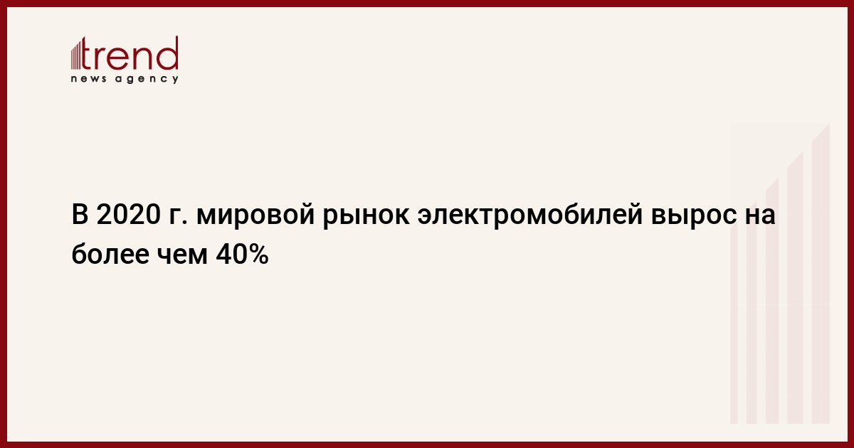 БАКУ /Trend/ - Согласно отчету Международного энергетического агентства (МЭА), в 2020 году мировой рынок электромобилей вырос на более чем 40 процентов.