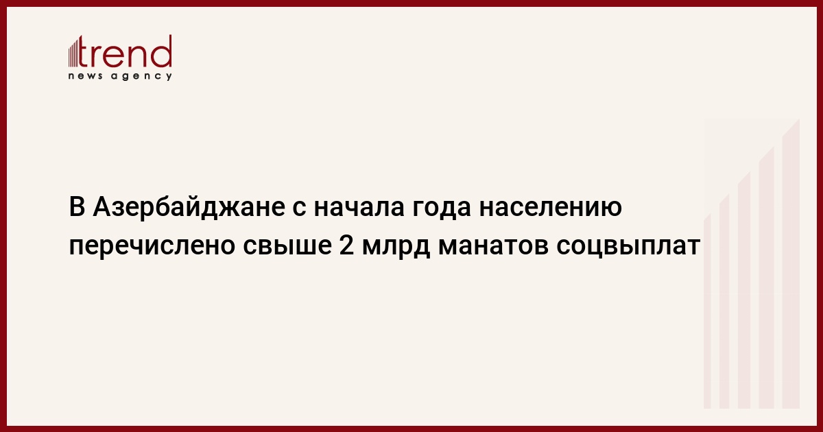 БАКУ /Trend/ - В Азербайджане с января по апрель 2021 года размер выплаченных населению пенсий, пособий, стипендий и адресной социальной помощи, составил 2 миллиарда 25 миллионов манатов, что на 6% (113,9 миллиона манатов) больше, чем за аналогичный период прошлого года.