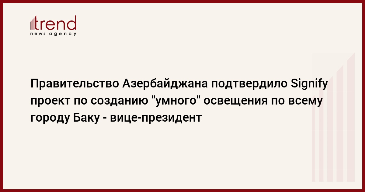 БАКУ /Trend/ - Правительство Азербайджана подтвердило Signify проект по созданию "умного" освещения по всему городу Баку, сказал Trend в понедельник вице-президент и генеральный директор Signify в России и СНГ Эрик Бенедетти.