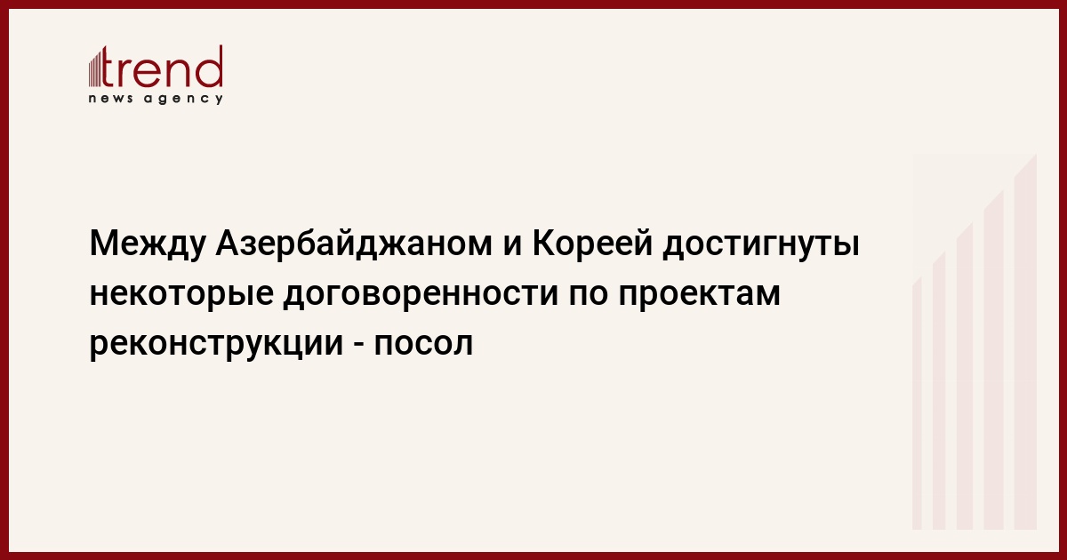 БАКУ /Trend/ - Между Азербайджаном и Кореей достигнуты некоторые договоренности об участии корейских компаний в восстановлении освобожденных азербайджанских территорий, сказал в четверг Trend чрезвычайный и полномочный посол Азербайджана в Республике Корея Рамзи Теймуров.