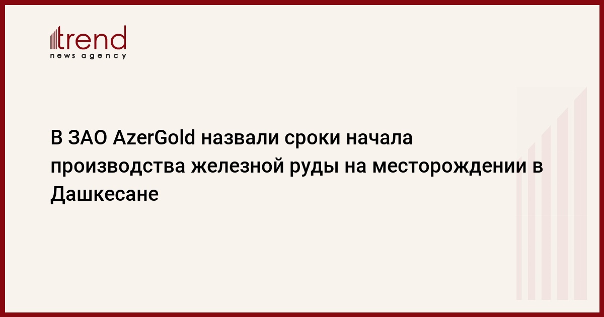 БАКУ /Trend/ - До конца 2022 года ЗАО AzerGold планирует начать производство железной руды на Дашкесанском рудном месторождении.