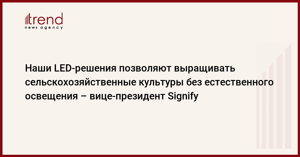 БАКУ /Trend/ - LED-решения Signify позволяют увеличить урожайность и экономить ресурсы, а также выращивать сельскохозяйственные культуры при полном отсутствии естественного света.