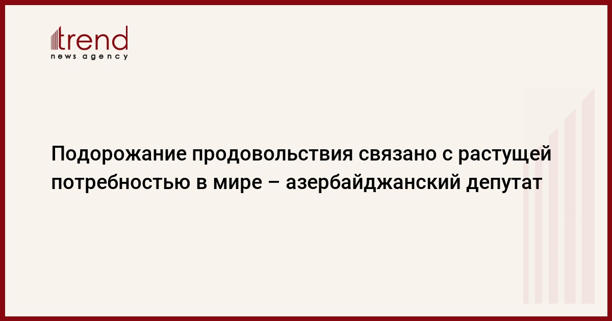 БАКУ /Trend/ - Вопрос продовольственной безопасности день ото дня глобализируется, многие страны на грани голода. Резко растет потребность в зерне, которое занимает главное место в продовольственной продукции. И эта растущая на глобальном уровне потребность способствует подорожанию продовольственных продуктов.