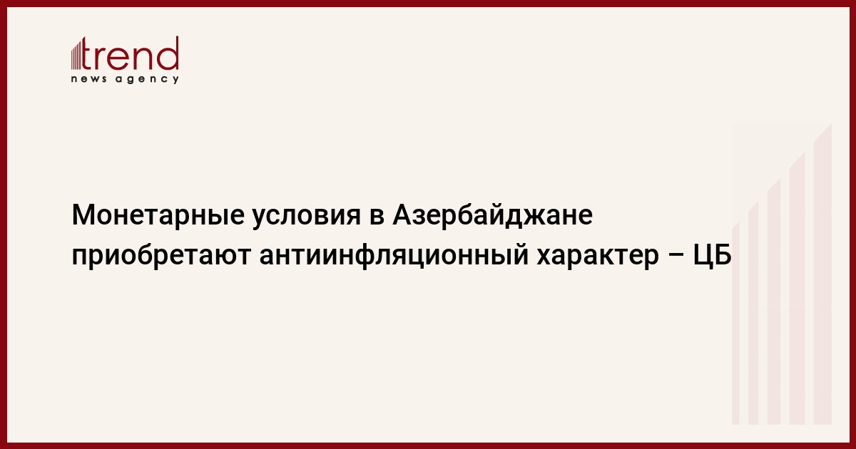БАКУ /Trend/ - Монетарные условия в Азербайджане приобретают антиинфляционный характер, и значительных изменений номинальных процентов по кредитам и депозитам не наблюдается.