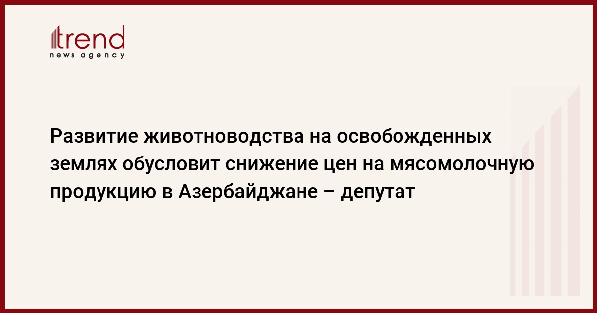 БАКУ /Trend/ - Развитие животноводства на освобожденных территориях создаст условия для снижения цен на мясомолочную продукцию в Азербайджане, сказал во вторник Trend председатель комитета по аграрной политике Милли Меджлиса (парламент) Таир Рзаев.