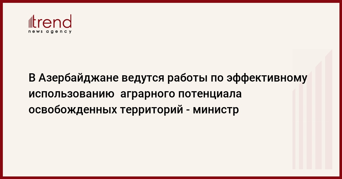 БАКУ /Trend/ - В Азербайджане ведутся последовательные работы по эффективному использованию аграрного потенциала освобожденных территорий.