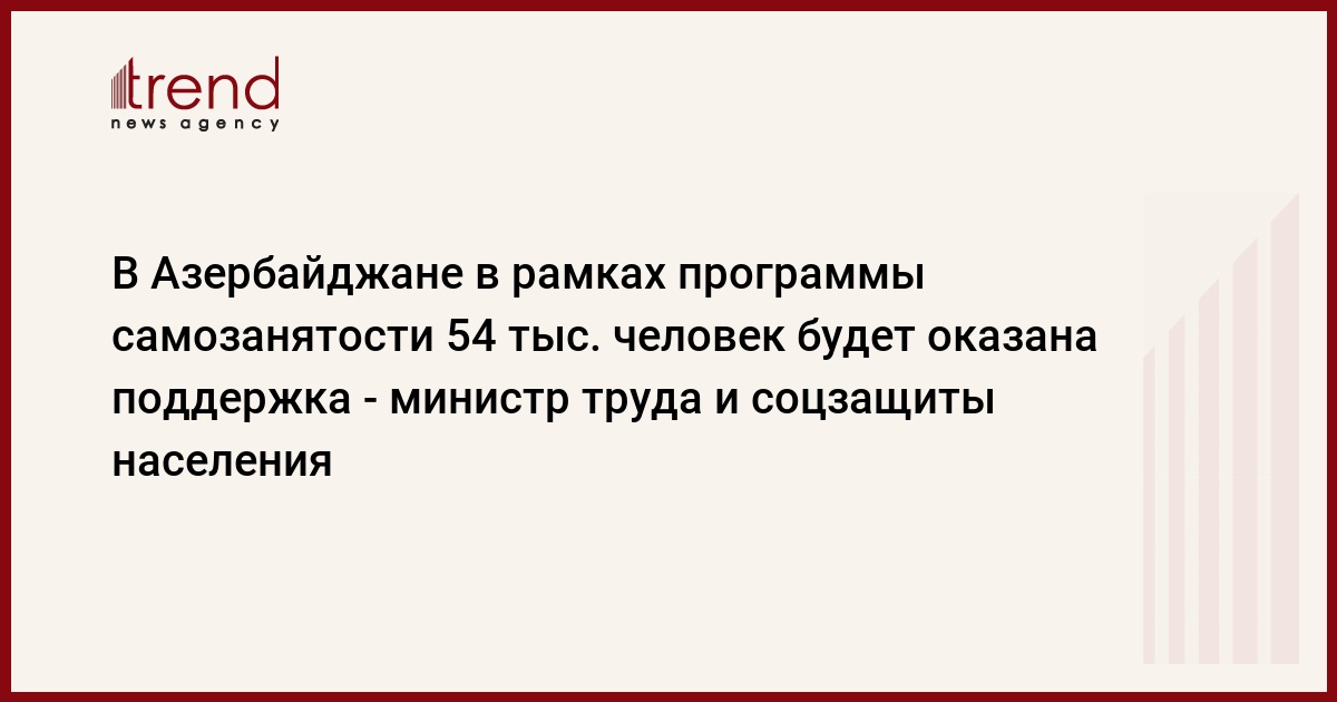 БАКУ /Trend/ - В Азербайджане в рамках программы самозанятости 54 тыс. человек будет оказана поддержка.