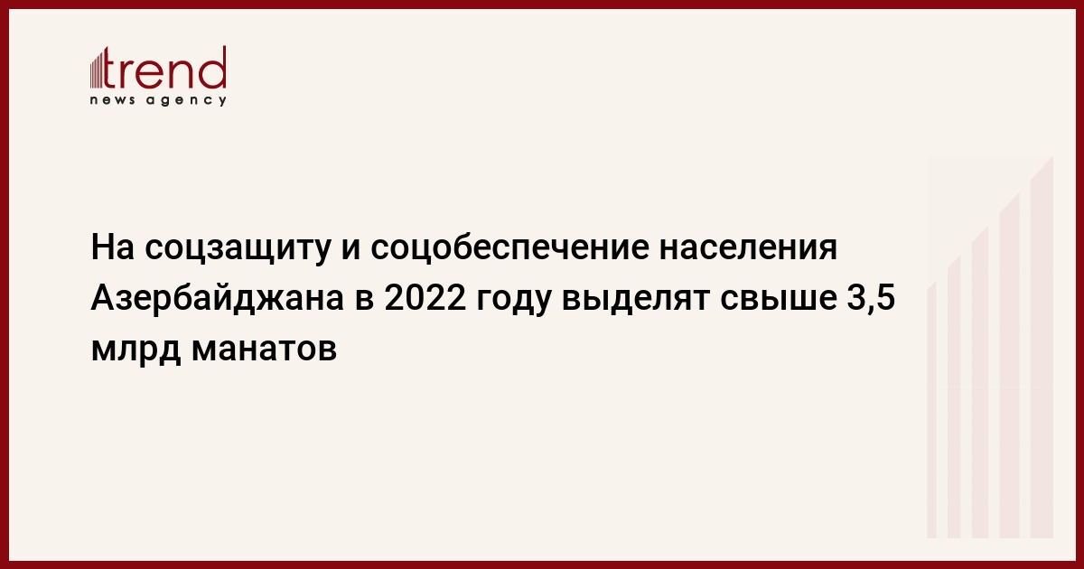 БАКУ /Trend/ - На социальную защиту и социальное обеспечение из государственного бюджета Азербайджана в 2022 году планируется выделить около 3,566 миллиарда манатов, сообщает в среду Trend со ссылкой на проект государственного бюджета Азербайджана на будущий год.