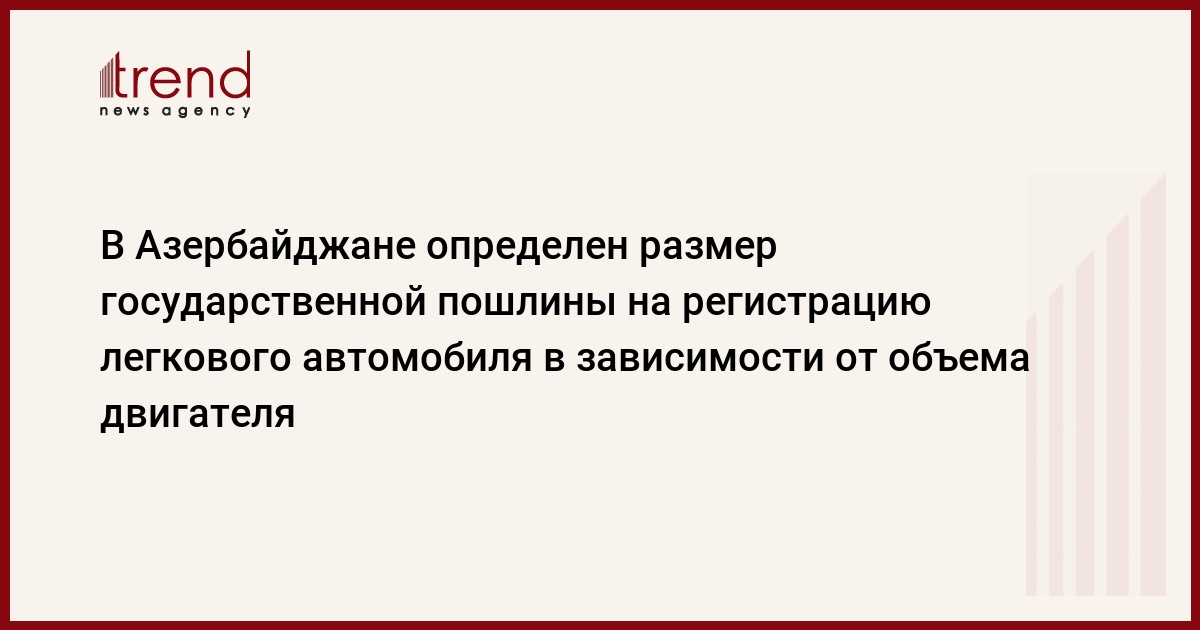 БАКУ /Trend / - В Азербайджане определен размер государственной пошлины на регистрацию легкового автомобиля в зависимости от объема двигателя, сообщает в среду Trend.