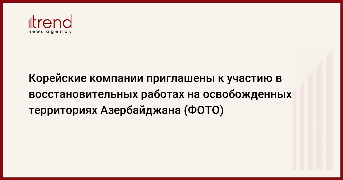 Он назвал приоритеты социально-экономического развития Азербайджана, рассказал о проделанной работе по интеграции экономики страны в глобальные производственно - сбытовые цепочки и мировую экономику, призвал корейские компании воспользоваться благоприятной деловой средой в нашей стране, активно сотрудничать и участвовать в проектах, реализуемых на освобожденных территориях.