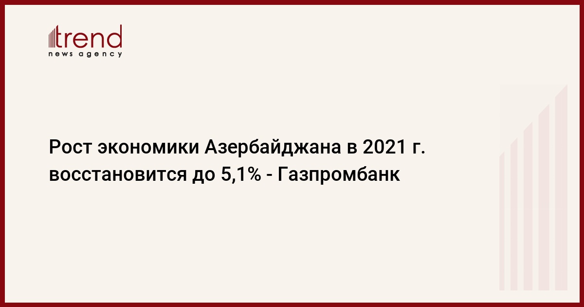 БАКУ /Trend/ - Спрос на углеводороды и реализация новых проектов в Карабахе добавят один процент к росту экономики Азербайджана в 2021 году, который составит 5,1 процента.
