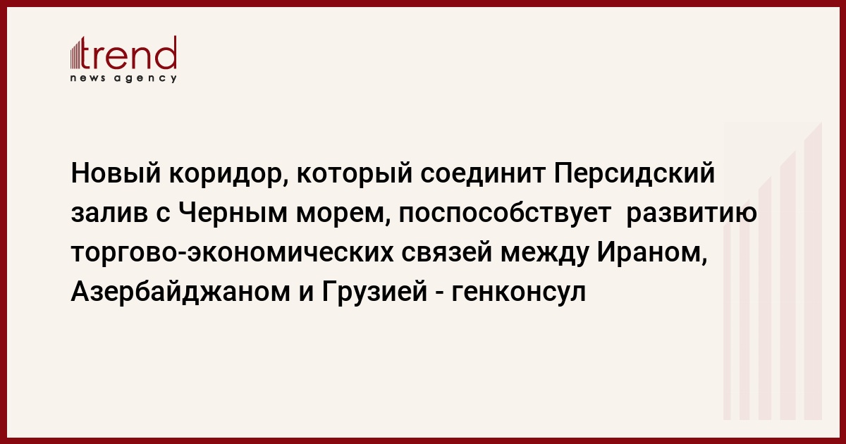 БАКУ /Trend/ - Новый коридор, который соединит Персидский залив с Черным морем, поспособствует развитию торгово-экономических отношений между Ираном, Азербайджаном и Грузией.