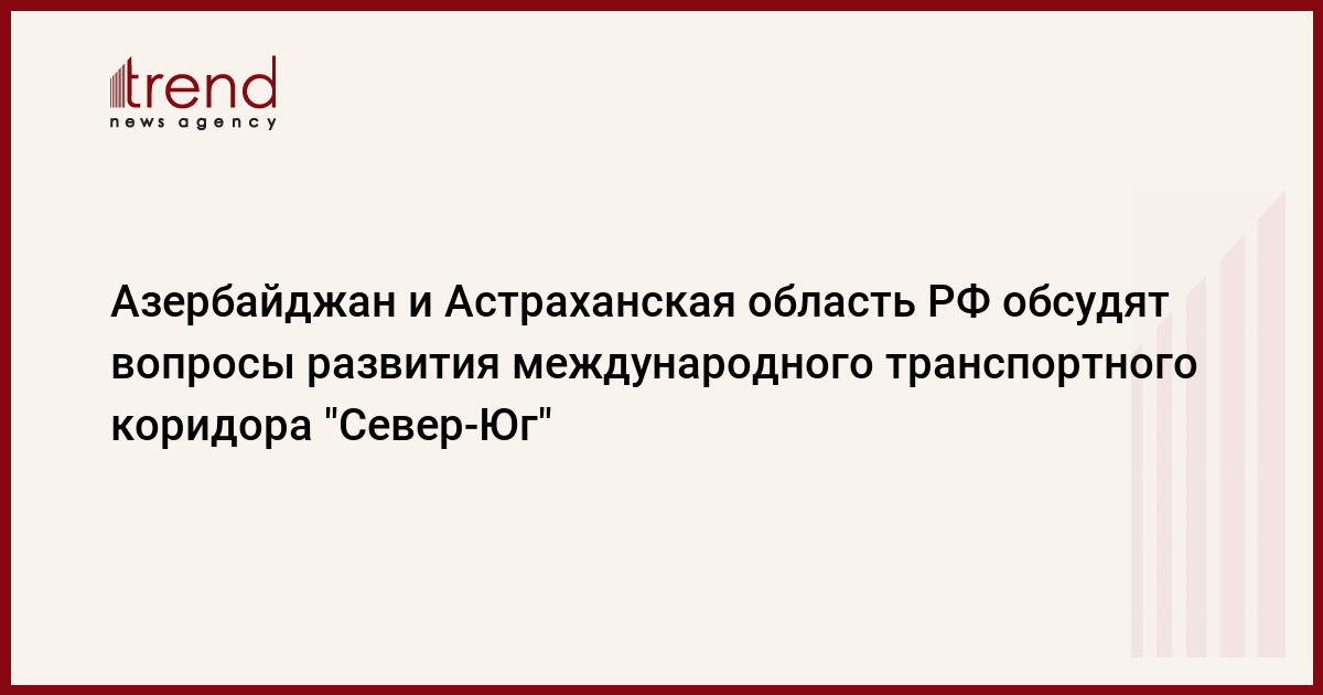 БАКУ /Trend/ - Азербайджан и Астраханская область России обсудят вопросы развития международного транспортного коридора "Север-Юг", сообщает в среду Trend.