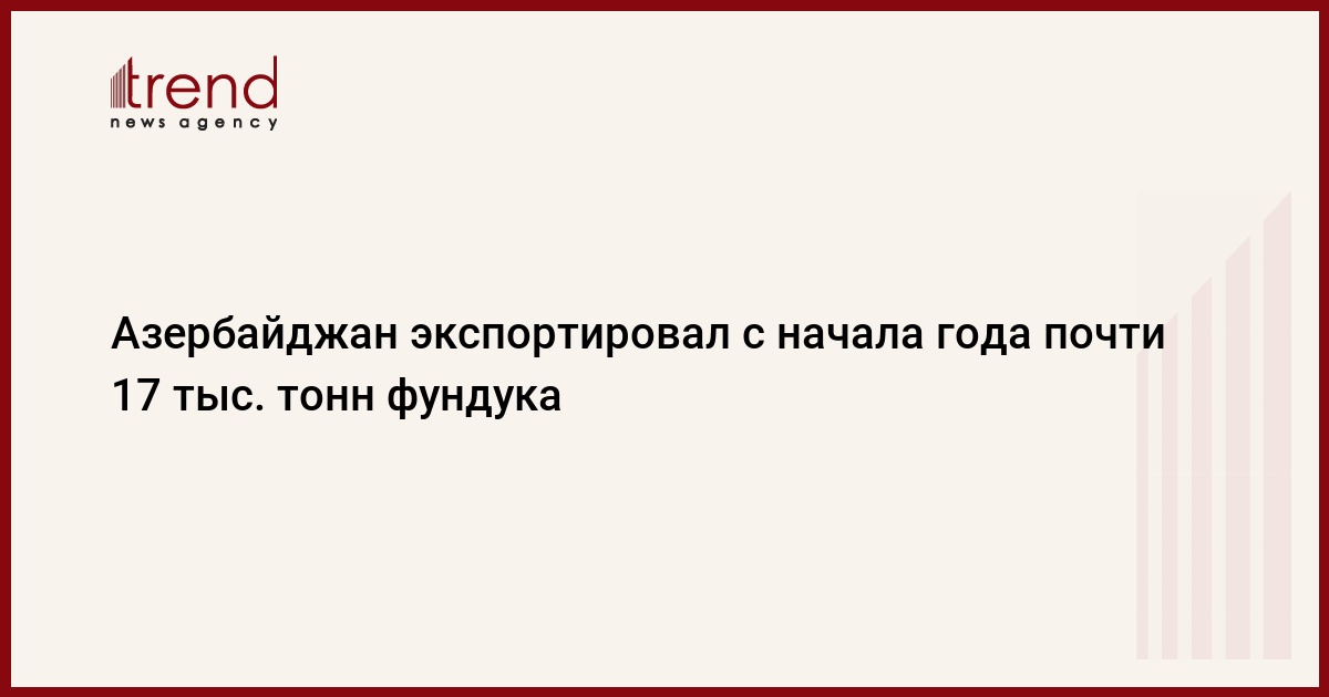 БАКУ /Trend/ - Азербайджан в январе - ноябре 2021 года увеличил экспорт фундука на 0,82 процента, или 138 тонн по сравнению с аналогичным периодом прошлого года - до около 16,95 тысячи тонн, сообщает в среду Trend со ссылкой на отчет Государственного таможенного комитета (ГТК) Азербайджана.
