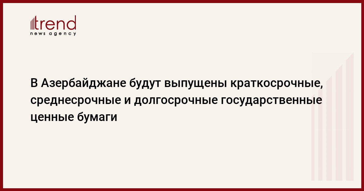 БАКУ /Trend/ - В Азербайджане предусматривается выпуcк краткосрочных, среднесрочных и долгосрочных государственных ценных бумаг.
