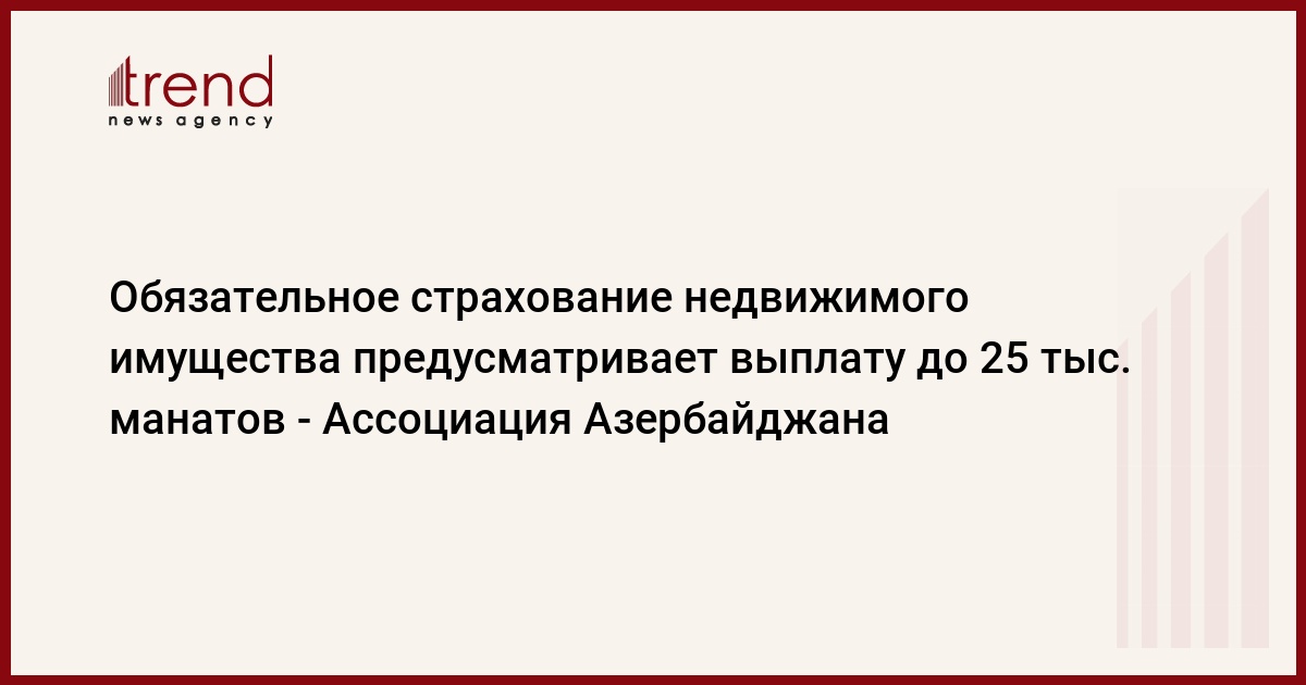 "При возникновении страхового случая владельцу недвижимого объекта, зарегистрированного в городе Баку, предполагается компенсация до 25 тысяч манатов, в Сумгайыте, Гяндже и Нахчыване - до 20 тысяч манатов, а в других районах Азербайджана - до 15 тысяч манатов", - сказали в Ассоциации.