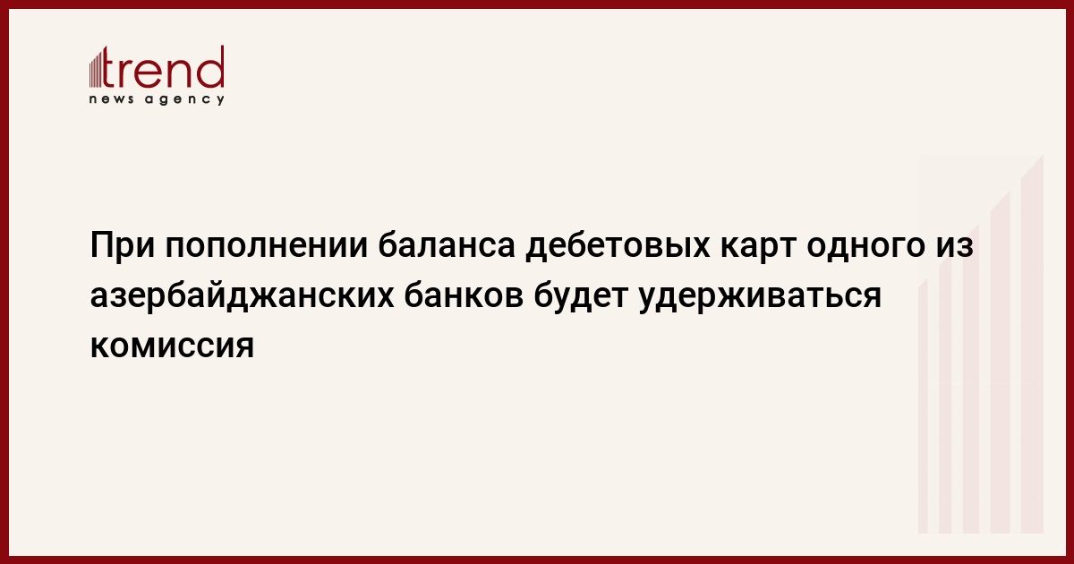 БАКУ /Trend/ - С первого апреля 2022 года в Азербайджане при пополнении баланса дебетовых карт Azer-Turk-Bank (ATB) с помощью платежных терминалов eManat и MilliÖN будет удерживаться комиссия в размере одного процента.