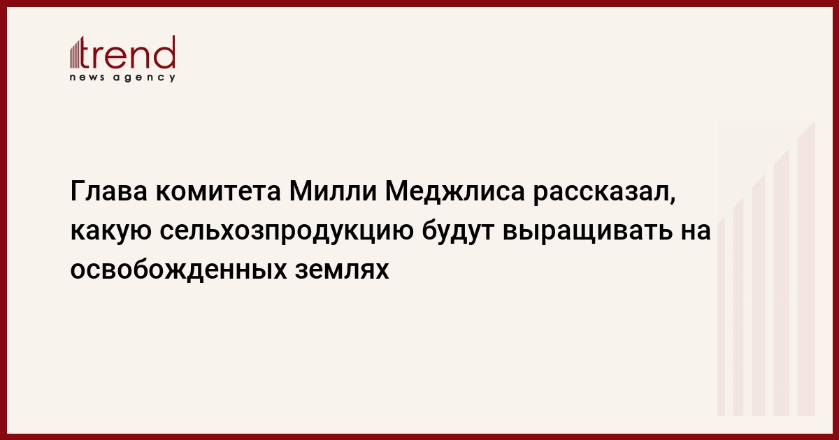 «Часть освобожденных от оккупации территорий очищена от мин и готовится к севу. В Агдамском и Физулинском районах выгодно выращивать хлопок, виноград, сахарную свеклу, кукурузу, так как земли там очень плодородные.