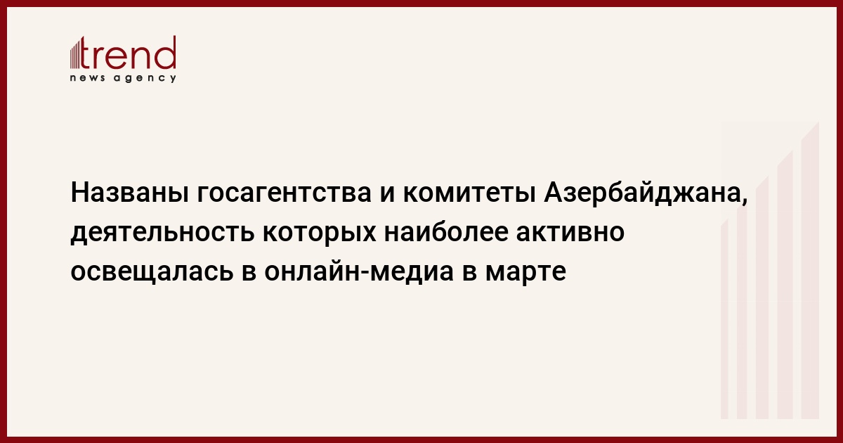 БАКУ /Trend/- В Азербайджане обнародованы итоги освещения деятельности агентств и комитетов в онлайн-медиа за март.
