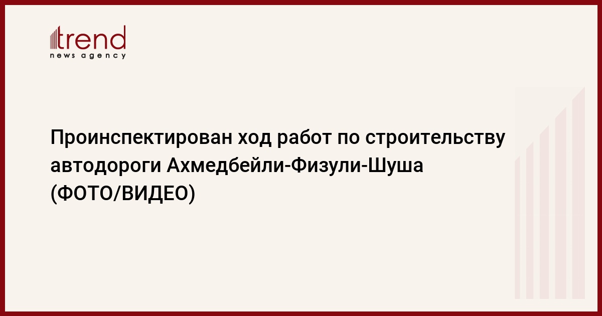 БАКУ /Trend/ - Председатель правления Государственного агентства автомобильных дорог Азербайджана Салех Мамедов проинспектировал ход работ по строительству автодороги Ахмедбейли-Физули-Шуша.