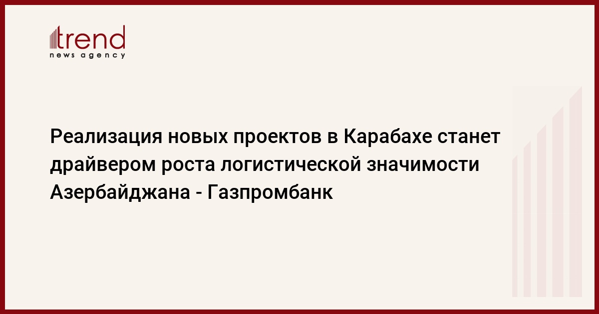 БАКУ /Trend/ - Реализация новых проектов на освобожденных территориях Азербайджана станет дополнительным драйвером роста и повышения логистической значимости Азербайджана в регионе.