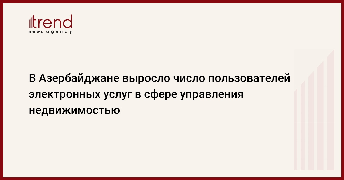 БАКУ /Trend/ - В Азербайджане в январе-марте 2022 года количество пользователей электронных услуг в сфере управления недвижимостью увеличилось на 137 024 человека, или 32 процента по сравнению с аналогичным периодом прошлого года, сообщает Trend в среду со ссылкой на министерство экономики.