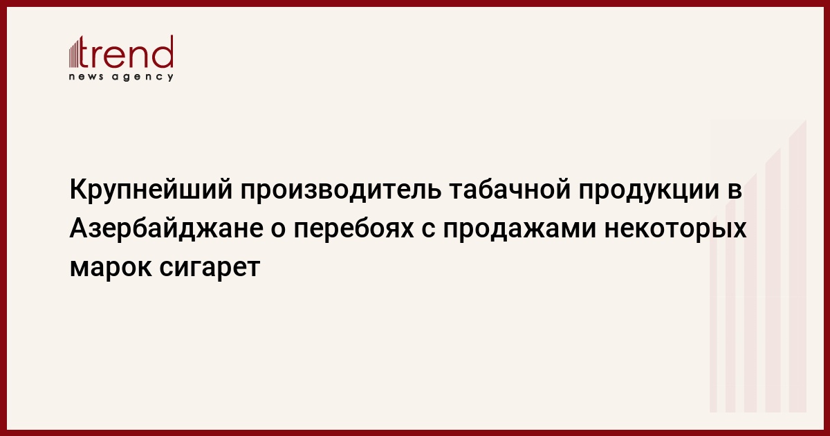 БАКУ /Trend/ - В Азербайджане в последние дни наблюдается отсутствие в продаже некоторых марок сигарет или повышение цен на них.