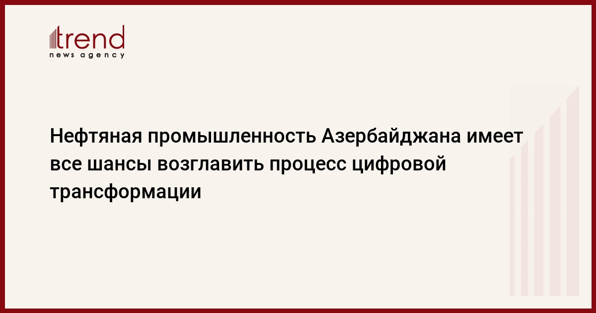 БАКУ /Trend/ - Нефтяная промышленность Азербайджана имеет все шансы возглавить процесс цифровой трансформации в списке отраслей с высоким уровнем цифровой трансформации. Крупные банки Азербайджана держатся на высоких позициях рейтингов в области инноваций.