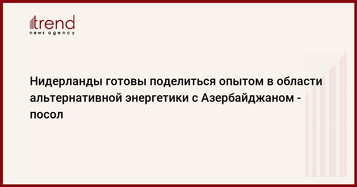 БАКУ /Trend/ - Нидерланды готовы поделиться своим опытом в области развития морской ветроэнергетики с Азербайджаном.