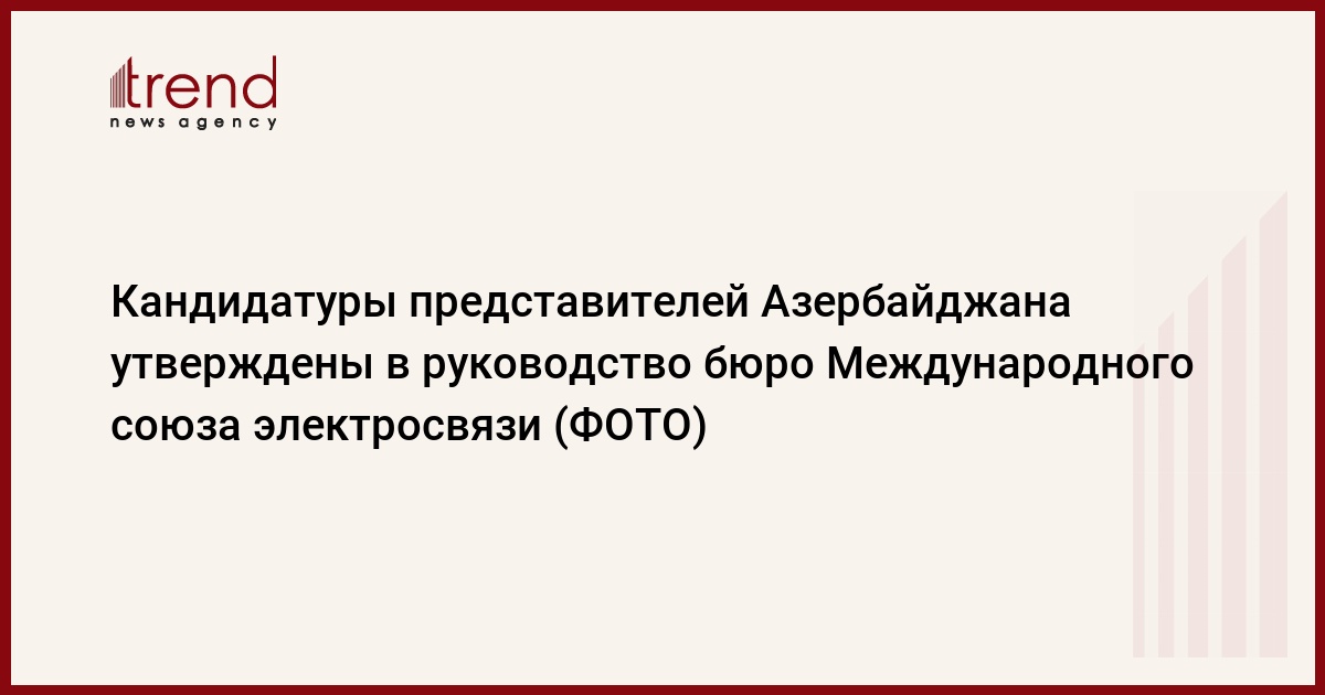БАКУ /Trend/ - На Всемирной конференции по развитию электросвязи в Кигали (Руанда) утверждены кандидатуры представителей Азербайджана в руководство исследовательскими группами Бюро развития Международного союза электросвязи (МСЭ), сказали в среду Trend в министерстве цифрового развития и транспорта Азербайджана.