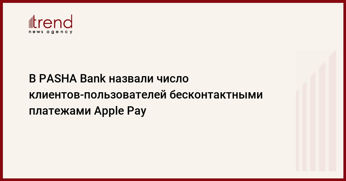 БАКУ /Trend/ - Сегодня число клиентов PASHA Bank, являющихся пользователями бесконтактных платежей Apple Pay, достигает семи тысяч.
