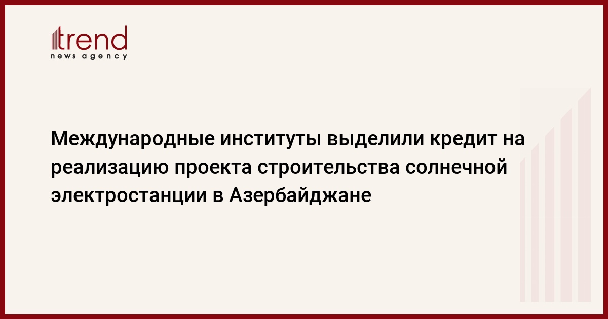 БАКУ /Trend/ - Европейский банк реконструкции и развития (ЕБРР), Азиатский банк развития (АБР), Японское агентство международного сотрудничества (JICA) и Фонд развития Абу-Даби (ADFD) выделили кредит в размере 114,2 миллиона долларов на проект строительства фотоэлектрической (PV) солнечной электростанции в Азербайджане, передает Trend со ссылкой на ЕБРР.
